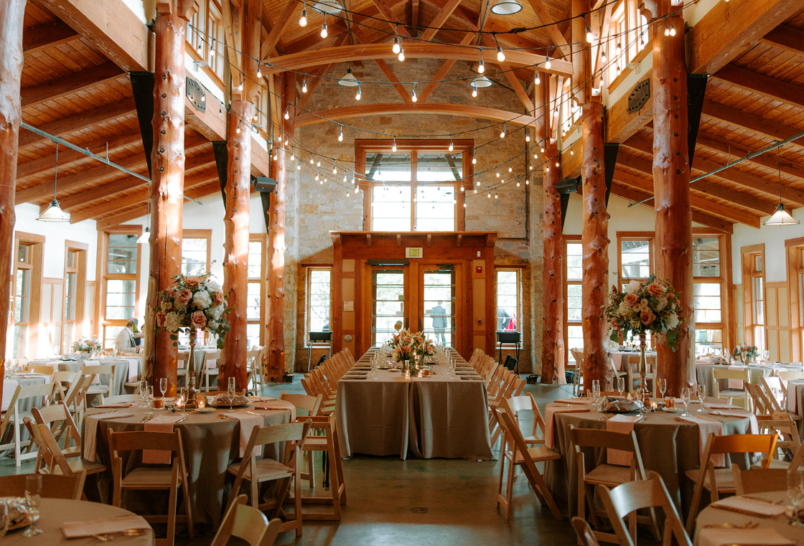 Our impressive building features natural stone, wood accents, and pine pillars, creating both a cozy and grand atmosphere that can accommodate your entire party for dinner, dancing, and cocktail hour! Beyond its beauty, the building’s environmental features earned Wisconsin’s first Gold LEED (Leadership in Energy and Environmental Design) award! It uses sustainable energy systems such as solar panels and geothermal heating and cooling to help keep your guests comfortable all year round. During your first dance under our magical café string lights, you can feel good knowing the electricity used has less of an environmental impact.