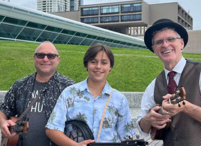 This Sunday’s performance features Restrung Family Fun (Formerly known as We 3 Ukes), a Milwaukee-based group including Tom and Vinn Stemper and Steve Girman. They perform engaging and playful music that encourages audience participation and movement. The selections for their children’s performances reflect Steve’s 45 years of experience in early childhood education. They utilize puppets, scarves, and even some juggling to keep children entertained. Learn more about Restrung Family Fun.
